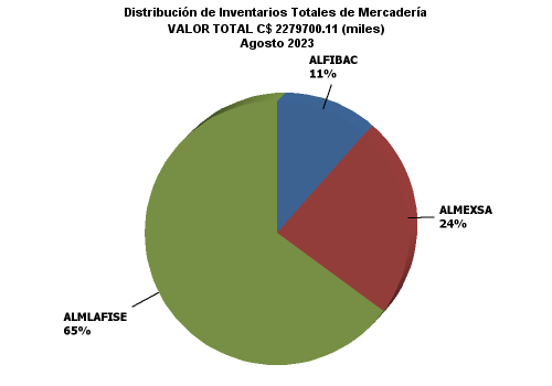 | | | | ALMLAFISE | ALMEXSA | ALFIBAC | TOTALES | | | | | | | | MERCANCIAS ALMACENADAS | 1,481,140.43 | 536,648.03 | 261,911.64 | 2,279,700.11 | | Bodegas propias | 645,638.46 | 0.00 | 0.00 | 645,638.46 | | Mercaderías en Depósito Financiero | 94,187.52 | 0.00 | 0.00 | 94,187.52 | | Mercaderías en Depósito Fiscal | 0.00 | 0.00 | 0.00 | 0.00 | | Mercaderías en Depósito Simple | 551,450.94 | 0.00 | 0.00 | 551,450.94 | | Bodegas Arrendadas Directas | 626,712.42 | 0.00 | 0.00 | 626,712.42 | | Mercaderías en Depósito Financiero | 23,761.25 | 0.00 | 0.00 | 23,761.25 | | Mercaderías en Depósito Fiscal | 601,965.94 | 0.00 | 0.00 | 601,965.94 | | Mercaderías en Depósito Simple | 985.23 | 0.00 | 0.00 | 985.23 | | Bodegas Arrendadas | 4,686.02 | 536,648.03 | 261,911.64 | 803,245.69 | | Mercaderías en Depósito Financiero | 0.00 | 329,738.77 | 180,066.34 | 509,805.11 | | Mercaderías en Depósito Fiscal | 4,686.02 | 0.00 | 0.00 | 4,686.02 | | Mercaderías en Depósito Corriente | 0.00 | 206,909.26 | 81,845.31 | 288,754.57 | | Bodegas Habilitadas | 204,103.53 | 0.00 | 0.00 | 204,103.53 | | Mercaderías en Depósito Financiero | 174,811.95 | 0.00 | 0.00 | 174,811.95 | | Mercaderías en Depósito Corriente | 29,291.58 | 0.00 | 0.00 | 29,291.58 | | SEGUROS | 4,482,688.25 | 1,392,713.11 | 1,397,994.51 | 7,273,395.88 | | Seguros contratados | 4,482,688.25 | 1,392,713.11 | 1,397,994.51 | 7,273,395.88 | | De mercadería | 4,465,813.32 | 1,292,662.81 | 1,379,802.06 | 7,138,278.20 | | De bienes inmuebles y muebles propios | 4,543.51 | 79,492.54 | 0.00 | 84,036.05 | | De bienes inmuebles y muebles ajenos | 0.00 | 0.00 | 0.00 | 0.00 | | Otros seguros | 12,331.42 | 20,557.75 | 18,192.45 | 51,081.63 | | FIANZAS | 5,475.40 | 0.00 | 0.00 | 5,475.40 | | Fianzas contratadas | 5,475.40 | 0.00 | 0.00 | 5,475.40 | | A favor de la Dirección General de Aduanas | 5,475.40 | 0.00 | 0.00 | 5,475.40 | | De fidelidad de funcionarios y empleados | 0.00 | 0.00 | 0.00 | 0.00 | | Otras fianzas | 0.00 | 0.00 | 0.00 | 0.00 |