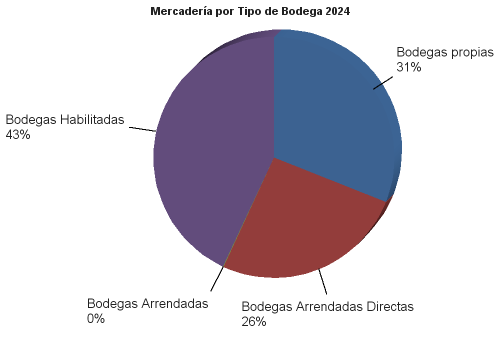 | | | 2024 | 2023 | | MERCANCIAS ALMACENADAS | 2,235,266.42 | 2,190,818.65 | | Bodegas propias | 693,181.59 | 726,412.81 | | Mercaderías en Depósito Financiero | 133,549.22 | 84,093.80 | | Mercaderías en Depósito Fiscal | 0.00 | 0.00 | | Mercaderías en Depósito Simple | 559,632.37 | 642,319.01 | | | 0.00 | | Bodegas Arrendadas Directas | 577,213.66 | 621,938.90 | | Mercaderías en Depósito Financiero | 32,289.61 | 19,494.12 | | Mercaderías en Depósito Fiscal | 541,761.80 | 597,622.73 | | Mercaderías en Depósito Simple | 3,162.25 | 4,822.05 | | | 0.00 | | Bodegas Arrendadas | 1,992.81 | 4,634.06 | | Mercaderías en Depósito Financiero | 0.00 | 0.00 | | Mercaderías en Depósito Fiscal | 1,992.81 | 4,634.06 | | Mercaderías en Depósito Corriente | 0.00 | 0.00 | | | 0.00 | | Bodegas Habilitadas | 962,878.36 | 837,832.87 | | Mercaderías en Depósito Financiero | 951,450.54 | 833,217.27 | | Mercaderías en Depósito Corriente | 11,427.82 | 4,615.60 | | | 0.00 | | SEGUROS | 4,614,118.70 | 4,562,276.39 | | Seguros contratados | 4,614,118.70 | 4,562,276.39 | | De mercadería | 4,597,228.63 | 4,545,424.19 | | De bienes inmuebles y muebles propios | 4,558.64 | 4,520.78 | | De bienes inmuebles y muebles ajenos | 0.00 | 0.00 | | Otros seguros | 12,331.42 | 12,331.42 | | FIANZAS | 5,493.64 | 5,448.02 | | Fianzas contratadas | 5,493.64 | 5,448.02 | | A favor de la Dirección General de Aduanas | 5,493.64 | 5,448.02 | | De fidelidad de funcionarios y empleados | 0.00 | 0.00 | | Otras fianzas | 0.00 | 0.00 |