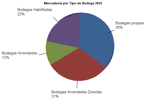 | | | 2025 | 2024 | | MERCANCIAS ALMACENADAS | 2,369,752.93 | 1,997,018.39 | | Bodegas propias | 830,022.39 | 804,697.05 | | Mercaderías en Depósito Financiero | 76,930.29 | 252,884.10 | | Mercaderías en Depósito Fiscal | 0.00 | 0.00 | | Mercaderías en Depósito Simple | 753,092.10 | 551,812.95 | | | 0.00 | | Bodegas Arrendadas Directas | 742,946.84 | 710,824.53 | | Mercaderías en Depósito Financiero | 16,761.78 | 32,061.53 | | Mercaderías en Depósito Fiscal | 712,100.79 | 673,578.67 | | Mercaderías en Depósito Simple | 14,084.27 | 5,184.33 | | | 0.00 | | Bodegas Arrendadas | 281,551.32 | 1,694.37 | | Mercaderías en Depósito Financiero | 269,438.18 | 0.00 | | Mercaderías en Depósito Fiscal | 3,441.42 | 1,694.37 | | Mercaderías en Depósito Corriente | 8,671.73 | 0.00 | | | 0.00 | | Bodegas Habilitadas | 515,232.38 | 479,802.44 | | Mercaderías en Depósito Financiero | 487,957.89 | 470,720.58 | | Mercaderías en Depósito Corriente | 27,274.49 | 9,081.86 | | | 0.00 | | SEGUROS | 4,938,024.01 | 4,096,763.83 | | Seguros contratados | 4,938,024.01 | 4,096,763.83 | | De mercadería | 4,921,133.94 | 4,079,873.77 | | De bienes inmuebles y muebles propios | 4,558.64 | 4,558.64 | | De bienes inmuebles y muebles ajenos | 0.00 | 0.00 | | Otros seguros | 12,331.42 | 12,331.42 | | FIANZAS | 5,493.64 | 5,493.64 | | Fianzas contratadas | 5,493.64 | 5,493.64 | | A favor de la Dirección General de Aduanas | 5,493.64 | 5,493.64 | | De fidelidad de funcionarios y empleados | 0.00 | 0.00 | | Otras fianzas | 0.00 | 0.00 |