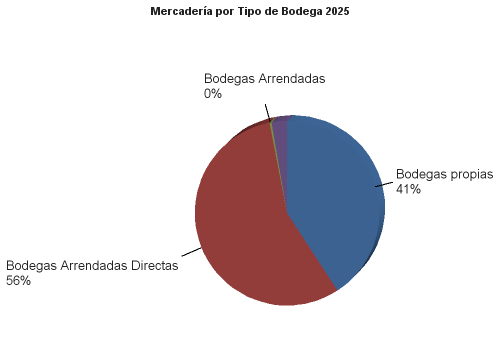 | | | 2025 | 2024 | | MERCANCIAS ALMACENADAS | 1,775,713.70 | 1,314,798.29 | | Bodegas propias | 723,912.96 | 757,820.55 | | Mercaderías en Depósito Financiero | 34,572.59 | 193,387.82 | | Mercaderías en Depósito Fiscal | 0.00 | 0.00 | | Mercaderías en Depósito Simple | 689,340.38 | 564,432.73 | | | 0.00 | | Bodegas Arrendadas Directas | 997,910.67 | 506,614.12 | | Mercaderías en Depósito Financiero | 216,889.56 | 28,567.05 | | Mercaderías en Depósito Fiscal | 747,761.83 | 474,149.77 | | Mercaderías en Depósito Simple | 33,259.28 | 3,897.30 | | | 0.00 | | Bodegas Arrendadas | 5,192.88 | 3,226.93 | | Mercaderías en Depósito Financiero | 0.00 | 0.00 | | Mercaderías en Depósito Fiscal | 5,192.88 | 3,226.93 | | Mercaderías en Depósito Corriente | 0.00 | 0.00 | | | 0.00 | | Bodegas Habilitadas | 48,697.19 | 47,136.69 | | Mercaderías en Depósito Financiero | 43,879.17 | 36,903.00 | | Mercaderías en Depósito Corriente | 4,818.02 | 10,233.69 | | | 0.00 | | SEGUROS | 4,938,024.01 | 4,144,741.67 | | Seguros contratados | 4,938,024.01 | 4,144,741.67 | | De mercadería | 4,921,133.94 | 4,127,851.60 | | De bienes inmuebles y muebles propios | 4,558.64 | 4,558.64 | | De bienes inmuebles y muebles ajenos | 0.00 | 0.00 | | Otros seguros | 12,331.42 | 12,331.42 | | FIANZAS | 5,493.64 | 5,493.64 | | Fianzas contratadas | 5,493.64 | 5,493.64 | | A favor de la Dirección General de Aduanas | 5,493.64 | 5,493.64 | | De fidelidad de funcionarios y empleados | 0.00 | 0.00 | | Otras fianzas | 0.00 | 0.00 |