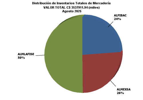 | | | | ALMLAFISE | ALMEXSA | ALFIBAC | TOTALES | | | | | | | | MERCANCIAS ALMACENADAS | 1,775,713.70 | 920,551.58 | 841,646.66 | 3,537,911.94 | | Bodegas propias | 723,912.96 | 0.00 | 0.00 | 723,912.96 | | Mercaderías en Depósito Financiero | 34,572.59 | 0.00 | 0.00 | 34,572.59 | | Mercaderías en Depósito Fiscal | 0.00 | 0.00 | 0.00 | 0.00 | | Mercaderías en Depósito Simple | 689,340.38 | 0.00 | 0.00 | 689,340.38 | | Bodegas Arrendadas Directas | 997,910.67 | 36,554.55 | 0.00 | 1,034,465.22 | | Mercaderías en Depósito Financiero | 216,889.56 | 8,431.53 | 0.00 | 225,321.09 | | Mercaderías en Depósito Fiscal | 747,761.83 | 0.00 | 0.00 | 747,761.83 | | Mercaderías en Depósito Simple | 33,259.28 | 28,123.03 | 0.00 | 61,382.30 | | Bodegas Arrendadas | 5,192.88 | 883,997.03 | 841,646.66 | 1,730,836.57 | | Mercaderías en Depósito Financiero | 0.00 | 772,516.84 | 542,875.38 | 1,315,392.22 | | Mercaderías en Depósito Fiscal | 5,192.88 | 0.00 | 0.00 | 5,192.88 | | Mercaderías en Depósito Corriente | 0.00 | 111,480.19 | 298,771.28 | 410,251.48 | | Bodegas Habilitadas | 48,697.19 | 0.00 | 0.00 | 48,697.19 | | Mercaderías en Depósito Financiero | 43,879.17 | 0.00 | 0.00 | 43,879.17 | | Mercaderías en Depósito Corriente | 4,818.02 | 0.00 | 0.00 | 4,818.02 | | SEGUROS | 4,938,024.01 | 2,354,798.62 | 2,023,433.48 | 9,316,256.11 | | Seguros contratados | 4,938,024.01 | 2,354,798.62 | 2,023,433.48 | 9,316,256.11 | | De mercadería | 4,921,133.94 | 2,243,238.38 | 2,005,180.42 | 9,169,552.74 | | De bienes inmuebles y muebles propios | 4,558.64 | 88,718.26 | 0.00 | 93,276.90 | | De bienes inmuebles y muebles ajenos | 0.00 | 0.00 | 0.00 | 0.00 | | Otros seguros | 12,331.42 | 22,841.98 | 18,253.06 | 53,426.46 | | FIANZAS | 5,493.64 | 0.00 | 0.00 | 5,493.64 | | Fianzas contratadas | 5,493.64 | 0.00 | 0.00 | 5,493.64 | | A favor de la Dirección General de Aduanas | 5,493.64 | 0.00 | 0.00 | 5,493.64 | | De fidelidad de funcionarios y empleados | 0.00 | 0.00 | 0.00 | 0.00 | | Otras fianzas | 0.00 | 0.00 | 0.00 | 0.00 |