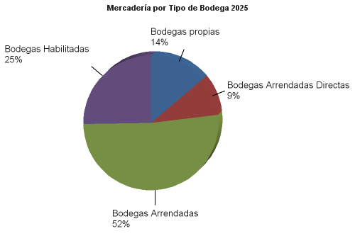 | | | 2025 | 2024 | | MERCANCIAS ALMACENADAS | 6,814,896.38 | 4,527,593.99 | | Bodegas propias | 940,410.15 | 864,146.73 | | Mercaderías en Depósito Financiero | 173,349.50 | 301,465.46 | | Mercaderías en Depósito Fiscal | 0.00 | 0.00 | | Mercaderías en Depósito Simple | 767,060.65 | 562,681.27 | | | 0.00 | | Bodegas Arrendadas Directas | 635,034.92 | 576,075.79 | | Mercaderías en Depósito Financiero | 14,629.62 | 36,576.21 | | Mercaderías en Depósito Fiscal | 618,137.69 | 536,434.13 | | Mercaderías en Depósito Simple | 2,267.61 | 3,065.45 | | | 0.00 | | Bodegas Arrendadas | 3,515,598.93 | 2,012,639.20 | | Mercaderías en Depósito Financiero | 2,300,030.72 | 1,007,162.53 | | Mercaderías en Depósito Fiscal | 5,123.74 | 1,810.90 | | Mercaderías en Depósito Corriente | 1,210,444.47 | 1,003,665.78 | | | 0.00 | | Bodegas Habilitadas | 1,723,852.38 | 1,074,732.27 | | Mercaderías en Depósito Financiero | 1,613,627.15 | 1,046,383.52 | | Mercaderías en Depósito Corriente | 110,225.23 | 28,348.75 | | | 0.00 | | SEGUROS | 11,116,670.27 | 8,243,707.65 | | Seguros contratados | 11,116,670.27 | 8,243,707.65 | | De mercadería | 10,969,124.35 | 8,108,400.27 | | De bienes inmuebles y muebles propios | 93,276.90 | 83,957.65 | | De bienes inmuebles y muebles ajenos | 0.00 | 0.00 | | Otros seguros | 54,269.02 | 51,349.73 | | FIANZAS | 5,493.64 | 5,493.64 | | Fianzas contratadas | 5,493.64 | 5,493.64 | | A favor de la Dirección General de Aduanas | 5,493.64 | 5,493.64 | | De fidelidad de funcionarios y empleados | 0.00 | 0.00 | | Otras fianzas | 0.00 | 0.00 |