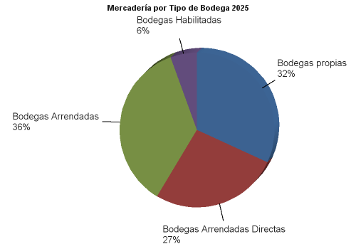 | | | 2025 | 2024 | | MERCANCIAS ALMACENADAS | 2,695,513.69 | 2,261,278.99 | | Bodegas propias | 858,707.60 | 880,563.88 | | Mercaderías en Depósito Financiero | 60,570.97 | 78,564.35 | | Mercaderías en Depósito Fiscal | 0.00 | 0.00 | | Mercaderías en Depósito Simple | 798,136.63 | 801,999.53 | | | 0.00 | | Bodegas Arrendadas Directas | 722,595.06 | 613,371.02 | | Mercaderías en Depósito Financiero | 20,088.40 | 24,856.93 | | Mercaderías en Depósito Fiscal | 679,985.11 | 585,698.89 | | Mercaderías en Depósito Simple | 22,521.54 | 2,815.20 | | | 0.00 | | Bodegas Arrendadas | 965,382.45 | 667,566.15 | | Mercaderías en Depósito Financiero | 793,931.60 | 442,226.41 | | Mercaderías en Depósito Fiscal | 3,432.82 | 4,600.39 | | Mercaderías en Depósito Corriente | 168,018.03 | 220,739.34 | | | 0.00 | | Bodegas Habilitadas | 148,828.58 | 99,777.95 | | Mercaderías en Depósito Financiero | 145,258.82 | 92,282.59 | | Mercaderías en Depósito Corriente | 3,569.76 | 7,495.36 | | | 0.00 | | SEGUROS | 8,513,599.79 | 6,415,057.07 | | Seguros contratados | 8,513,599.79 | 6,415,057.07 | | De mercadería | 8,367,480.57 | 6,278,942.06 | | De bienes inmuebles y muebles propios | 93,276.90 | 82,700.04 | | De bienes inmuebles y muebles ajenos | 0.00 | 0.00 | | Otros seguros | 52,842.32 | 53,414.97 | | FIANZAS | 5,493.64 | 5,493.64 | | Fianzas contratadas | 5,493.64 | 5,493.64 | | A favor de la Dirección General de Aduanas | 5,493.64 | 5,493.64 | | De fidelidad de funcionarios y empleados | 0.00 | 0.00 | | Otras fianzas | 0.00 | 0.00 |