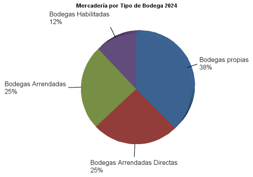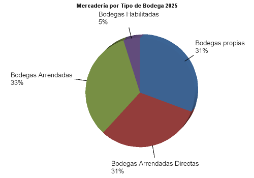 | | | 2025 | 2024 | | MERCANCIAS ALMACENADAS | 2,809,981.66 | 2,231,878.16 | | Bodegas propias | 863,731.46 | 838,216.55 | | Mercaderías en Depósito Financiero | 140,980.93 | 84,873.35 | | Mercaderías en Depósito Fiscal | 0.00 | 0.00 | | Mercaderías en Depósito Simple | 722,750.53 | 753,343.20 | | | 0.00 | | Bodegas Arrendadas Directas | 872,994.15 | 568,413.14 | | Mercaderías en Depósito Financiero | 40,860.11 | 16,890.51 | | Mercaderías en Depósito Fiscal | 814,410.81 | 548,359.76 | | Mercaderías en Depósito Simple | 17,723.23 | 3,162.87 | | | 0.00 | | Bodegas Arrendadas | 934,223.93 | 555,403.87 | | Mercaderías en Depósito Financiero | 758,469.76 | 403,107.82 | | Mercaderías en Depósito Fiscal | 5,127.88 | 4,387.94 | | Mercaderías en Depósito Corriente | 170,626.29 | 147,908.11 | | | 0.00 | | Bodegas Habilitadas | 139,032.11 | 269,844.61 | | Mercaderías en Depósito Financiero | 135,217.19 | 260,958.19 | | Mercaderías en Depósito Corriente | 3,814.92 | 8,886.42 | | | 0.00 | | SEGUROS | 8,718,057.71 | 6,429,096.52 | | Seguros contratados | 8,718,057.71 | 6,429,096.52 | | De mercadería | 8,572,576.65 | 6,293,555.16 | | De bienes inmuebles y muebles propios | 92,638.74 | 82,700.04 | | De bienes inmuebles y muebles ajenos | 0.00 | 0.00 | | Otros seguros | 52,842.32 | 52,841.32 | | FIANZAS | 5,493.64 | 5,493.64 | | Fianzas contratadas | 5,493.64 | 5,493.64 | | A favor de la Dirección General de Aduanas | 5,493.64 | 5,493.64 | | De fidelidad de funcionarios y empleados | 0.00 | 0.00 | | Otras fianzas | 0.00 | 0.00 |