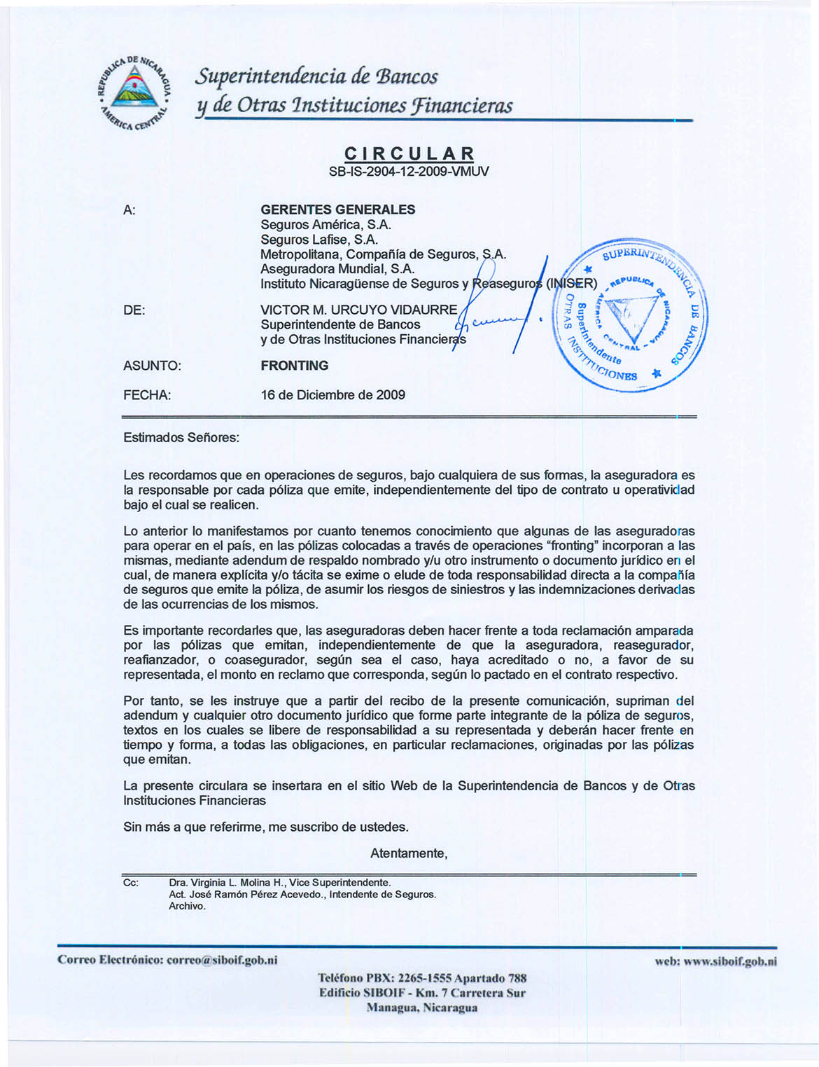 Reclamos ante la Superintendencia de Bancos y de Otras Instituciones Financieras (SIBOIF)
